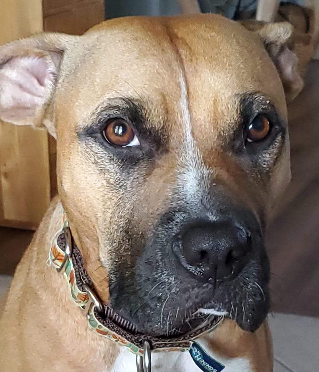 She makes that face, the angry one, the one she says she is sure the dog “knows.” That face means the human is angry: the dog should not be standing on the desk!