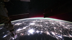 His footage showed the Sun setting behind Earth and darkness allowing spectacular views of the aurora in our atmosphere, as well as city lights across the globe.