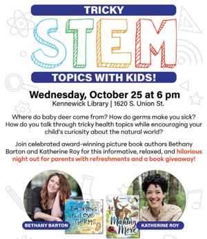 KENNEWICK, Wash.-Two authors are presenting an event for parents on how to address tricky topics for kids through STEM at the Kennewick Library on October 25 at 6:00 p.m.