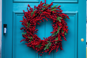Decorations become more extravagant each year – with this year’s display featuring a redcurrant and cranberry wreath set against a baby blue door, a striking silver and white display, and one wreath made entirely of colorful baubles.