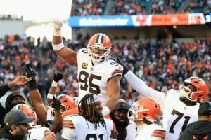 Cleveland Browns defensive end Myles Garrett set an NFL record for quarterback sacks in a single season by taking down Cincinnati’s Joe Burrow in the fourth quarter of Cleveland’s 20-18 road victory.