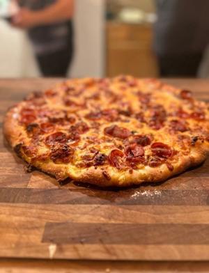 Menu items include pizza, cheesesteaks, wings and pasta.