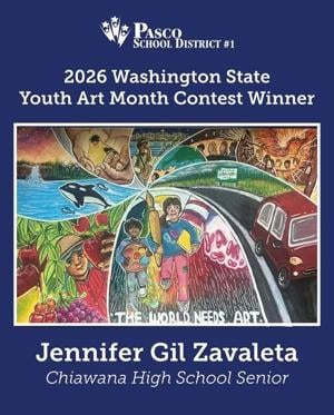 PASCO, Wash. – Jennifer Gil Zavaleta, a senior at Chiawana High School, has been named the 2026 Washington State Youth Art Month High School Level Winner. Her artwork, which highlights Washington’s culture and landscapes, earned her this prestigious recognition by the Washington Art Education Association (WAEA)