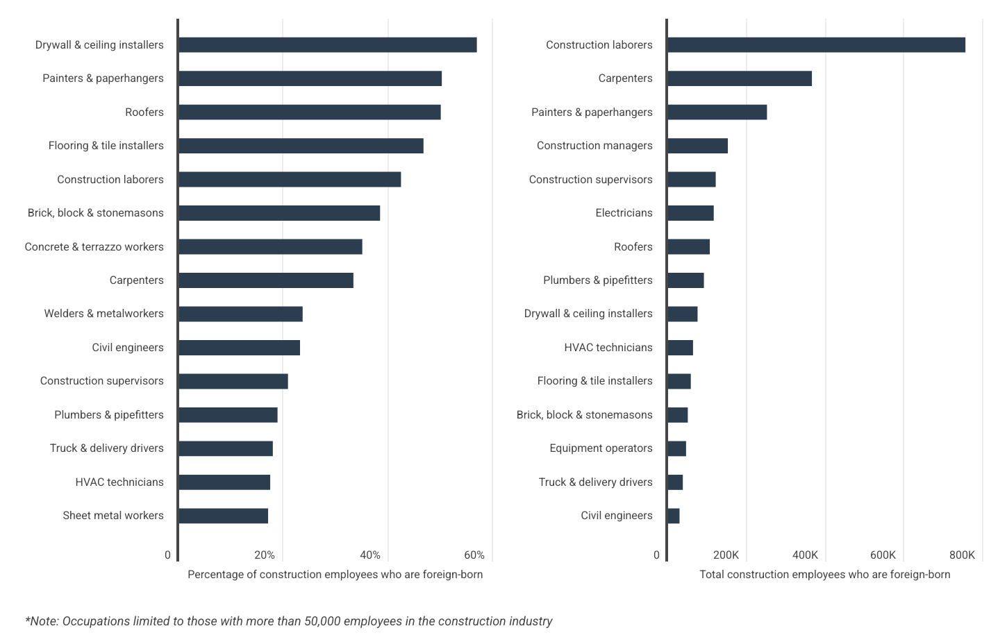 While over 750,000 U.S. construction laborers are foreign-born, 56.9% of drywallers are immigrants