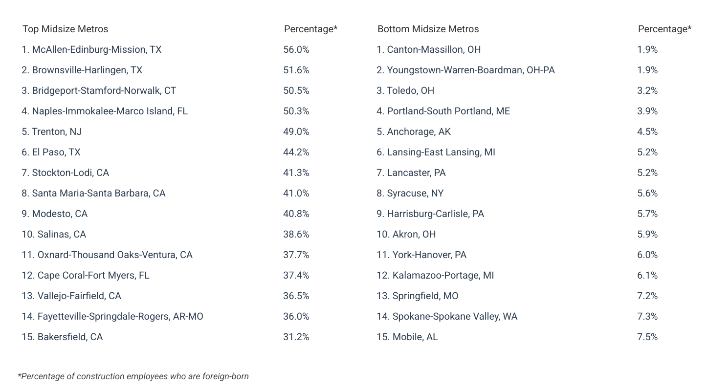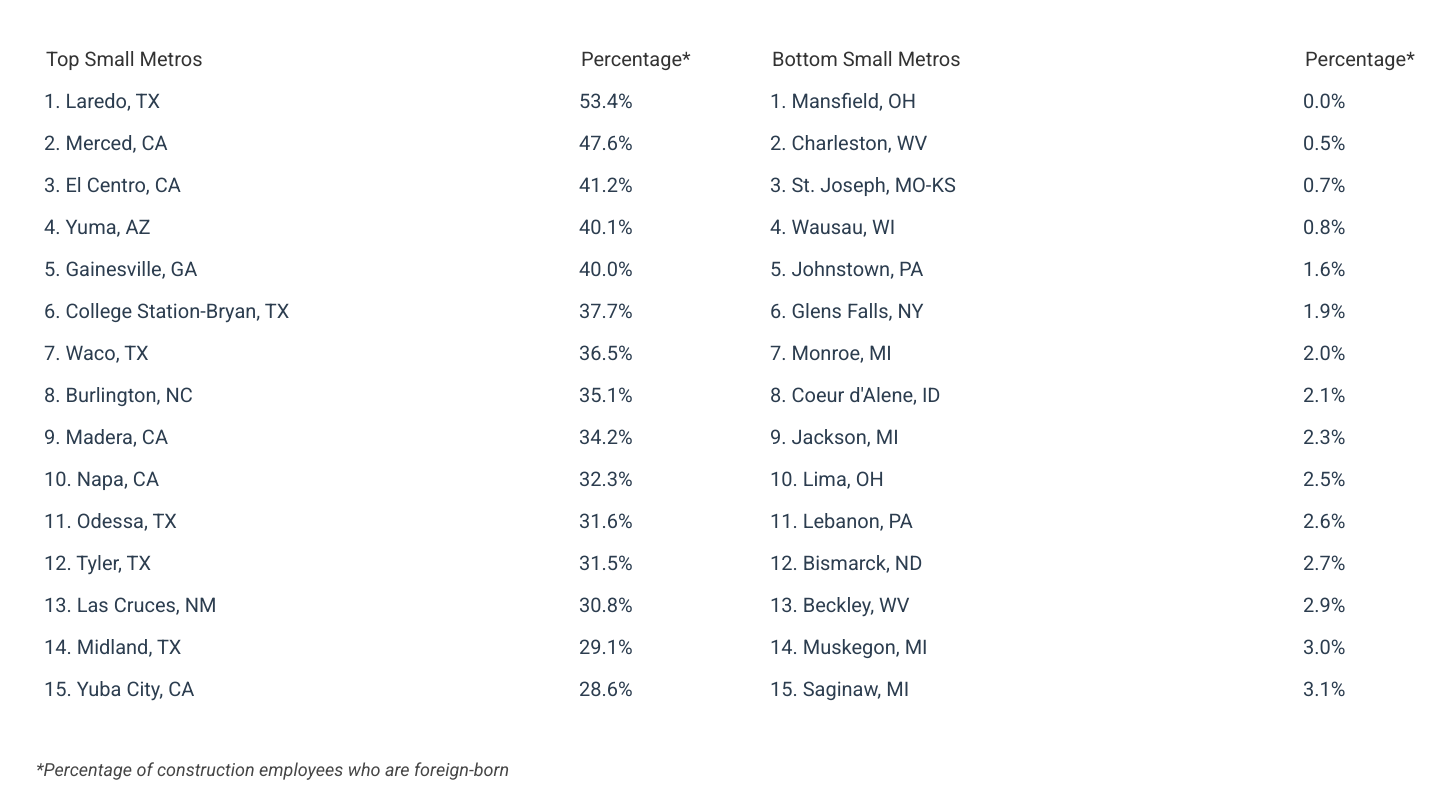 For complete results, see Cities Where the Construction Industry Depends Most on Foreign Workers on Construction Coverage.