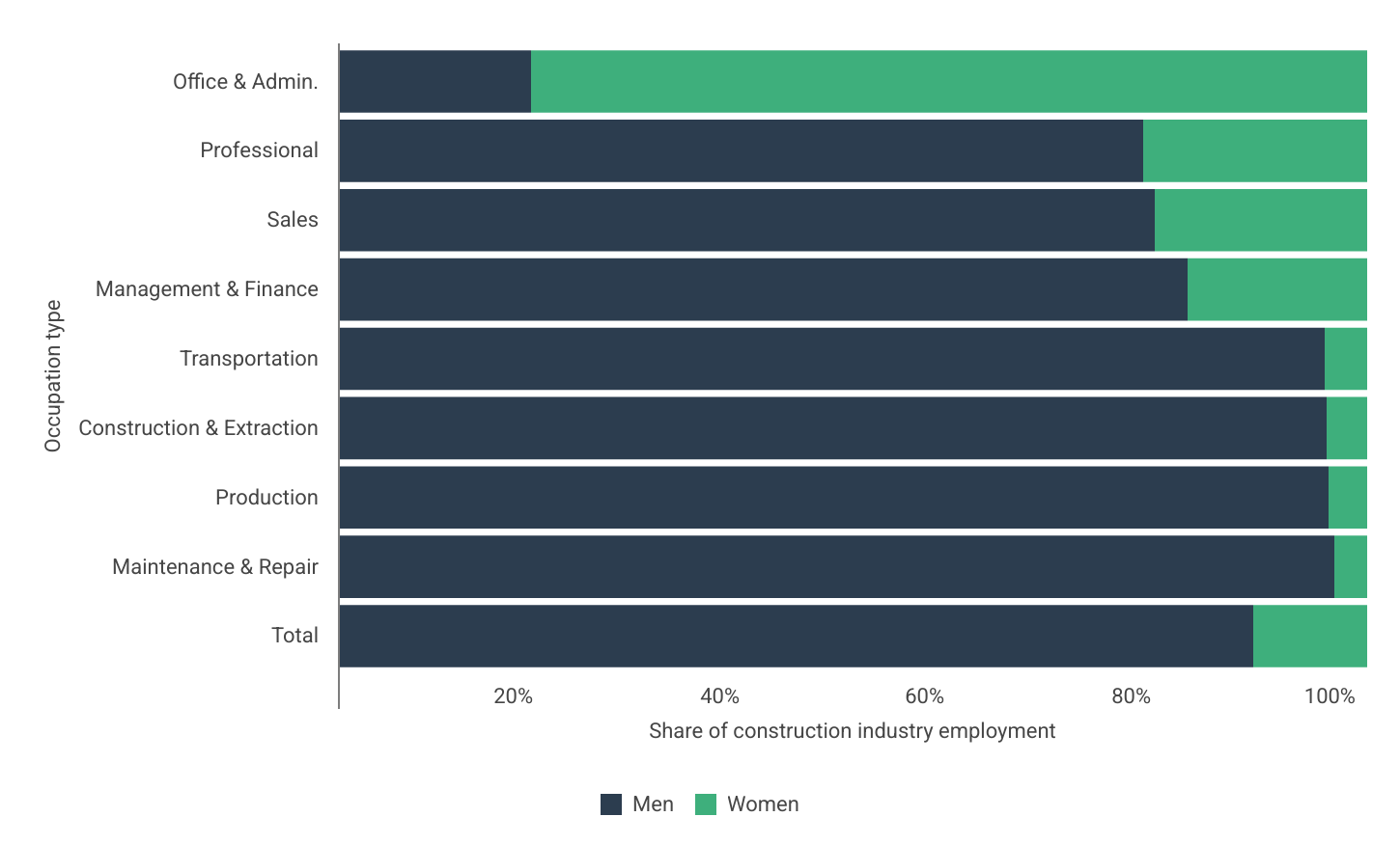 Female Construction Employment by Occupation Type