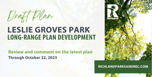 RICHLAND, Wash.-The City of Richland continues to work on a long-range development plan for Leslie Groves Park and the public is invited to review and comment on the proposed plan until October 22.