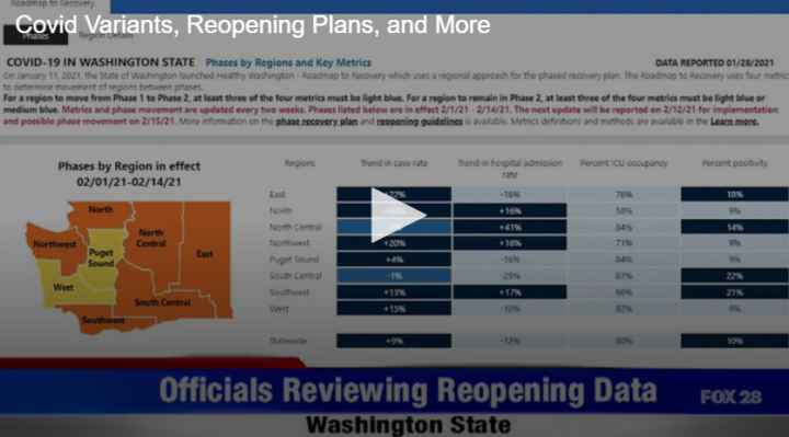 Covid Variants, Reopening Plans, and More by Fox 11 41 | @ | February 8, 2021 11:54 am TwitterFacebookGoogle+LinkedInPinterest 0 New information on the threat of the fast moving UK Covid variant as scientist study how fast it is spreading and how effective the vaccines are with both the UK variant as well as any new ones that emerge.Related Posts Space Junk Damages Space Station Summer Camps for Kids and Safety Tips Sports Update