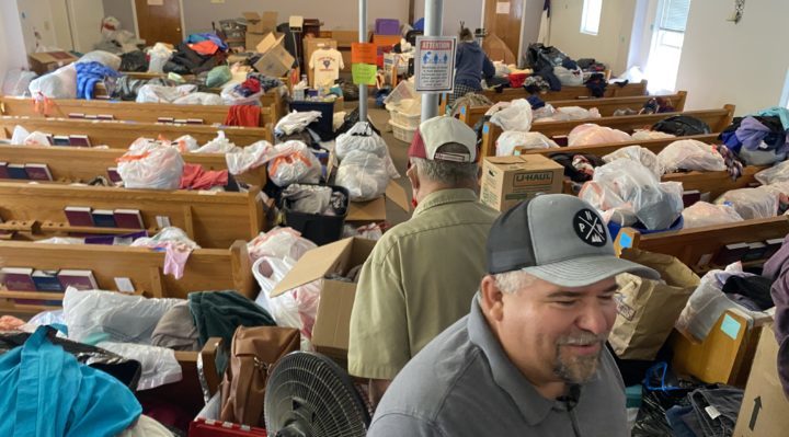 Just down the road, the Rosalia Assembly of God Church is in a similar situation. Pastor Pat Atchison said the building is so full of donations that they’re spilling onto the sidewalk, and a handmade sign out front reads “no more clothes, please.