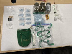 2,605 fentanyl pills7.3 ounces of fentanyl powder15.18 grams of heroin29.09 grams of meth109 Xanax pills68.27 grams of marijuana9 firearms$3034 in cash