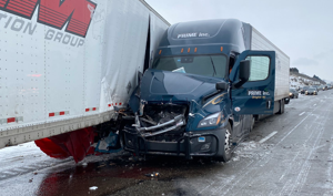 A three semi truck crash is currently blocking eastbound I-82 near Badger Canyon.