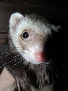 Your ferret may slip away sometime, as mine have down my stairs (no baby gate!). If you have a “recall” word or sound (like a squeaky toy), you may increase the chances that the ferret will run toward you, instead of away, when he’s loose in your home. It certainly can’t hurt to give it a try!