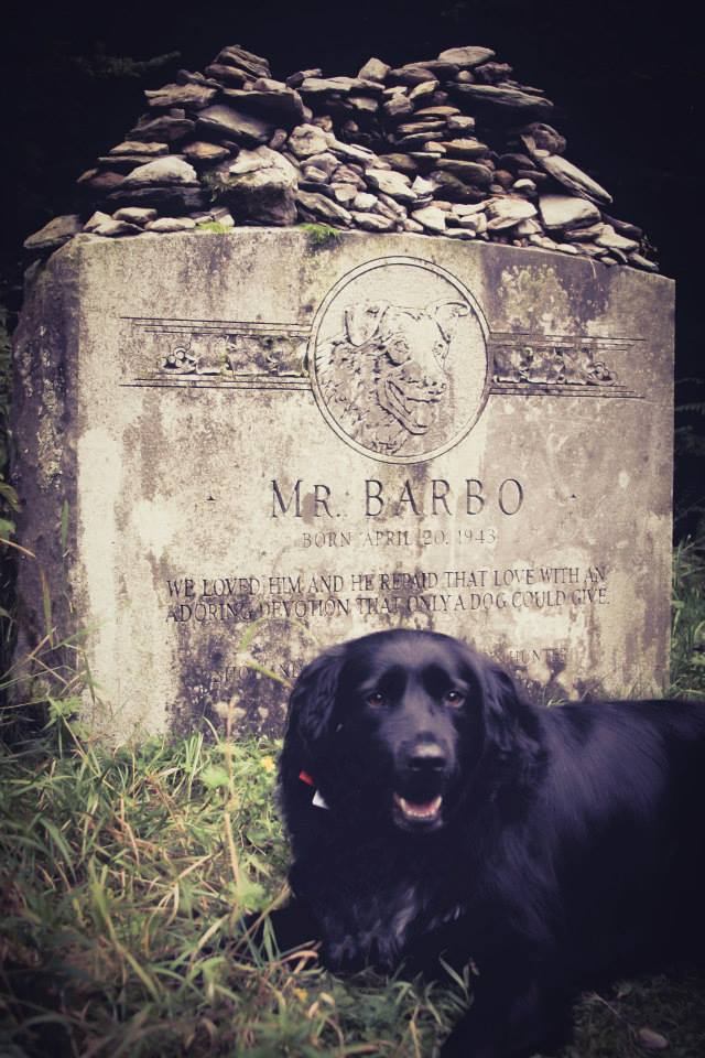 Kate LaSala Ctc Csat (Connecticut) Mr. Barbo was named in memoriam for his namesake, a dog who was killed by a cowardly hunter. My husband and I were in between dogs (our previous dog had passed away several months earlier) and we were hiking in Manchester, Vermont, and came across this gravestone. When we came home and decided to adopt, we named the then “Sloppy Joe” Mr. Barbo as a tribute. Here is a picture of our Mr. Barbo, at the grave, when we got married in Manchester. Both our dogs hiked with us to where we got married and then we visited the Barbo grave with everyone. When our Mr. Barbo died, we returned and left some of his ashes at the grave.