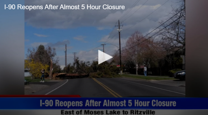 I-90 Reopens After Almost 5 Hour Closure by Fox 11 41 | @ | March 29, 2021 3:26 pm TwitterFacebookGoogle+LinkedInPinterest 0 I-90 from Moses Lake to Ritzville opens back up after shutting down for nearly 5 hours because of a dust storm.Related Posts Space Junk Damages Space Station Summer Camps for Kids and Safety Tips Sports Update