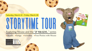 YAKIMA, Wash. – Yakima Valley Libraries is starting its Storytime Tour on March 22, featuring Mouse from ‘If You Give a Mouse a Cookie.’