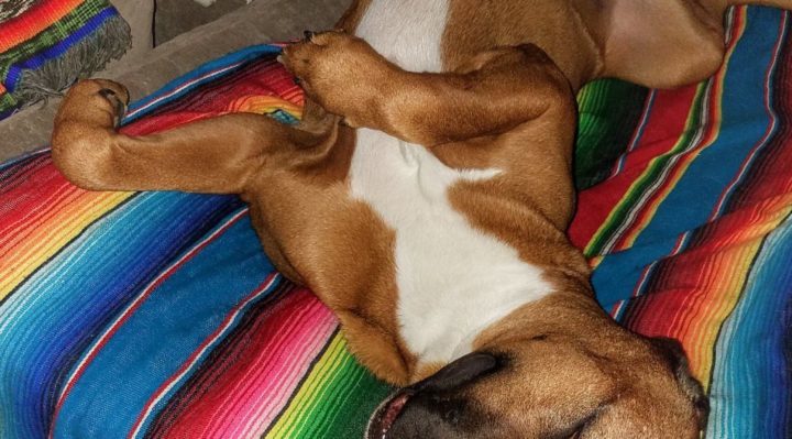 Colette Kase (Mexico) Rodney is a four-year-old Great Dane cross, rescued from the streets. He’s survived both distemper and sexually transmitted cancer. Us being here all the time seems to have increased his sense of security. He now spends much more time indulging in activities on his own and choosing to spend time in different areas of the house. Interestingly, he has not been going for walks during this period, so I wonder if that’s also a factor. Walks aren’t always of benefit to all dogs, and it’s often easy to confuse behaviors associated with underlying anxiety with other things. For example, while we thought that he really enjoyed sniffing and that walking him was giving him a great outlet for this, I’m starting to think that the sniffing may have been an expression of insecurity about novel things in his territory. I’ve actually become more aware of this recently. We do a lot more fun training and chase games around the house. Prior to lockdown, I would have never been able to say that I have no idea where in the house he was, but now I can because he spends time all over the place, hanging out.