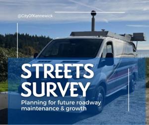 The survey, which started Fri., May 3, has the IMS capturing 3D images of the streets of Kennewick to measure rutting and roughness and collect GPS data. The City says this will help plan future roadway maintenance.