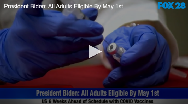President Biden: All Adults Eligible By May 1st by Fox 11 41 | @ | March 12, 2021 3:24 pm TwitterFacebookGoogle+LinkedInPinterest 0 President Biden states all adults will be eligible for the Covid vaccine by May 1st.Related Posts Space Junk Damages Space Station Summer Camps for Kids and Safety Tips Sports Update