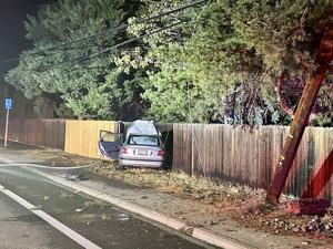 On scene, officers reportedly found the car with a fire in the engine compartment, along with several downed power lines and a damaged fence.