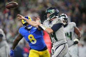 Darnold then found AJ Barner for another touchdown. Though the two-point attempt initially appeared incomplete, officials ruled Charbonnet had scored, after a backward pass deflected off a Rams helmet.