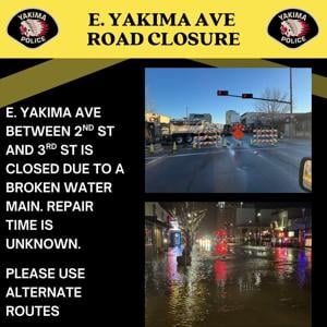 YAKIMA, Wash. – A portion of East Yakima Avenue in Yakima is closed due to a broken water main, according to the Yakima Police Department.
