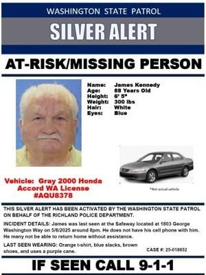 RICHLAND, Wash. – A Silver Alert is in effect in the Richland area for a missing 88-year-old man, according to the Richland Police Department.