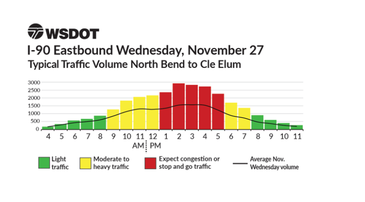 It’s almost time for 2019’s Thanksgiving travel weekend, and the Washington State Department of Transportation is hoping to help people avoid the worst of the traffic. Traffic analysts looked at historical data for past Thanksgiving weekends to determine how many cars they project to be on the road each hour for this year’s travel weekend.