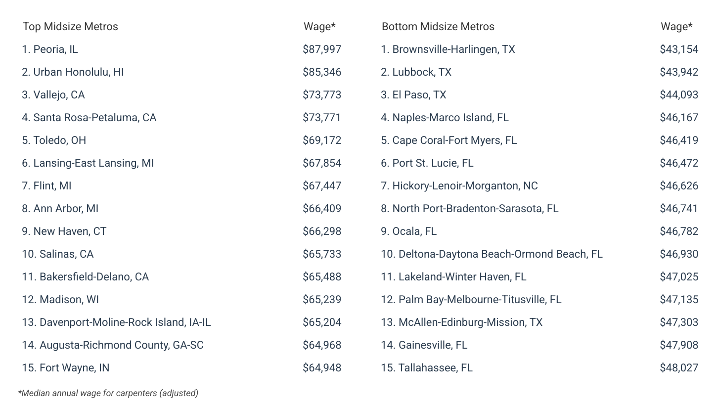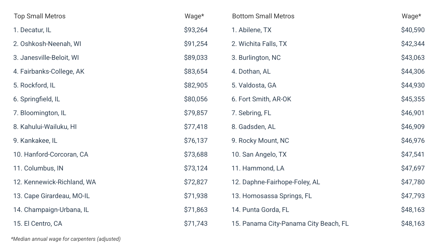 For complete results, see The Best-Paying American Cities for Carpenters on Construction Coverage.