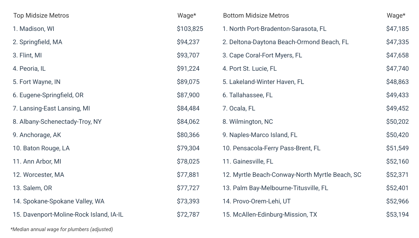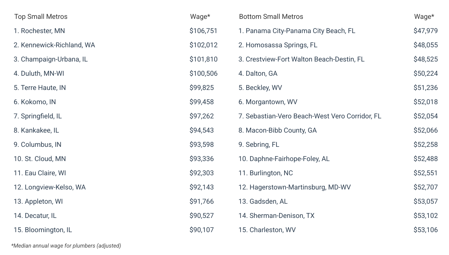For complete results, see The Best-Paying Cities for Plumbers on Construction Coverage.