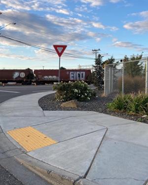 The train currently blocking Edison Street near Metaline Avenue in all directions.
