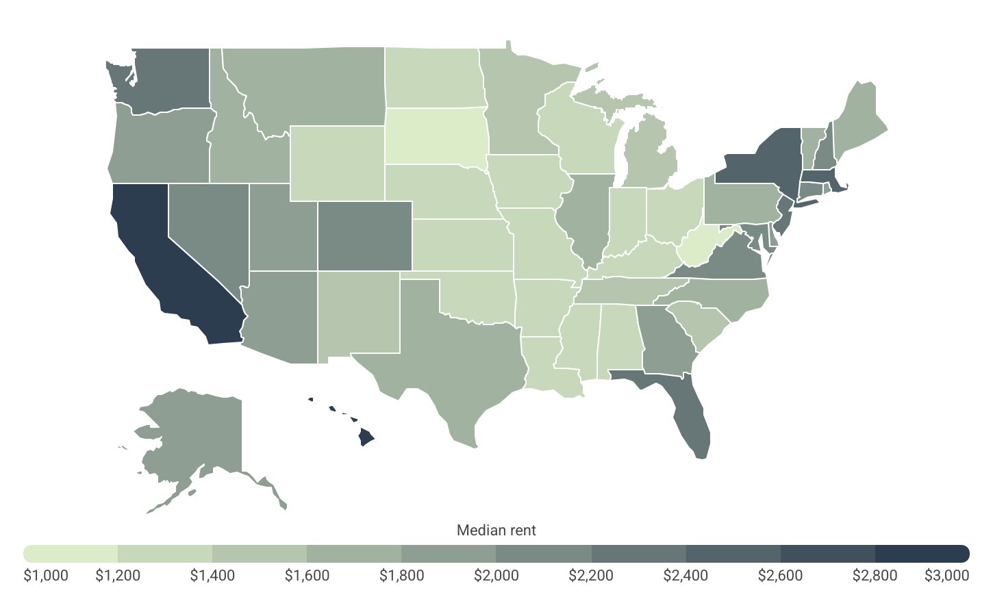 Rents in top coastal states are roughly double those found in the lower-cost parts of the Midwest, South, and Great Plains