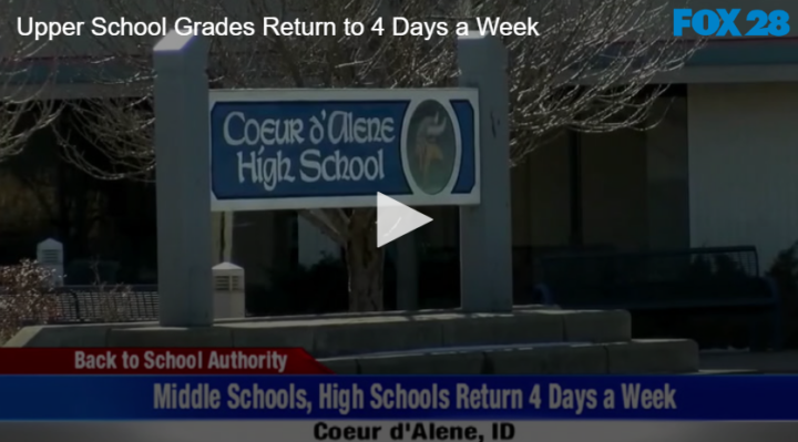 Upper School Grades Return to 4 Days a Week by Fox 11 41 | @ | January 21, 2021 12:05 pm TwitterFacebookGoogle+LinkedInPinterest 0 Multiple schools are looking to move back into the classroom as well as providing students with resources for their mental health.Related Posts Space Junk Damages Space Station Summer Camps for Kids and Safety Tips Sports Update