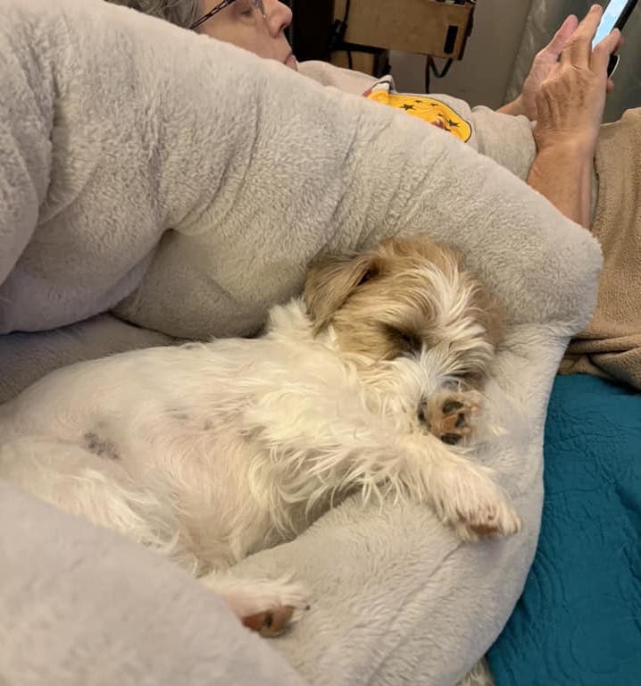 Deb Hunt (Washington) We are family … everyone sleeps in the bed. Babysits, too. I love cuddles and we all make adjustments for others.