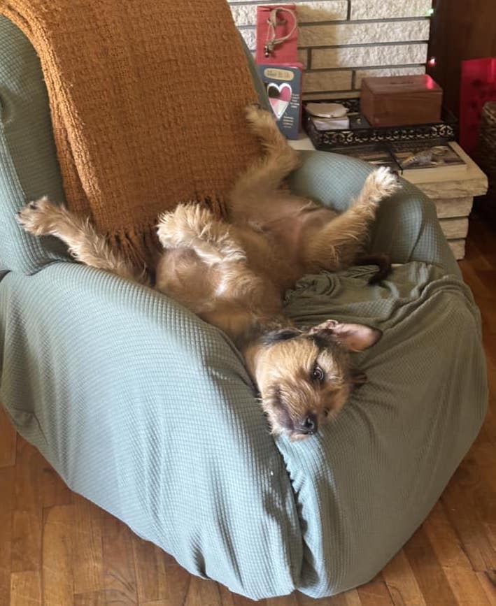 Sheri McEachran (Washington) I have one large dog with mobility issues and a smaller active dog, Eddie, who occasionally shares a dog bed with Poki. He also has a favorite sofa and chair and goes to our bed before us. When we come to bed, Eddie grumbles. (cross between a growl and mumble) and grumpily moves over a bit for us. For a smaller dog he takes up a LOT of space. Eddie also naps in his favorite chair!