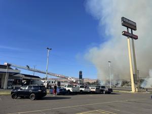 Embers jumped the road, igniting the roof of the Gear Jammer Truck Stop, where crews are currently working to control the situation.